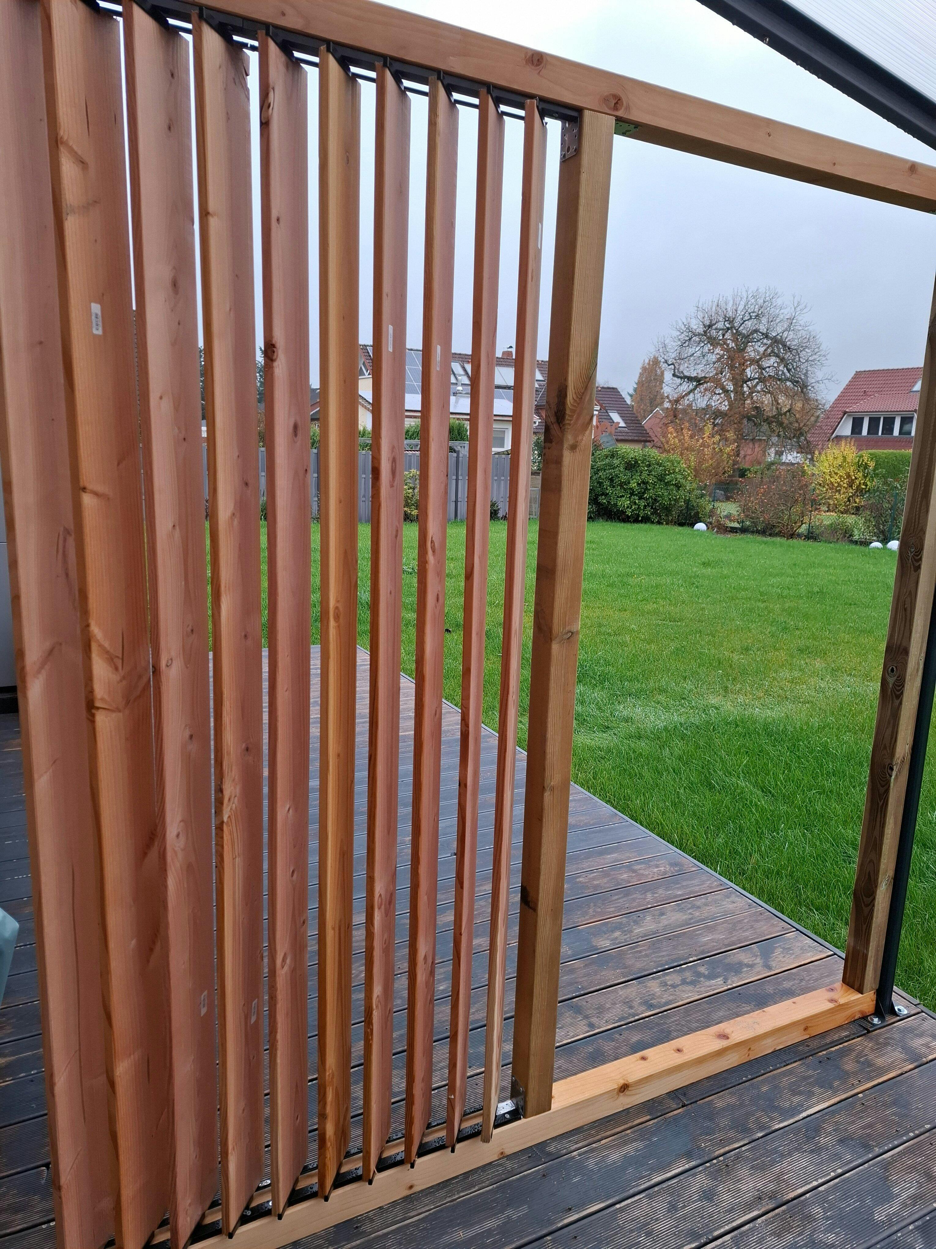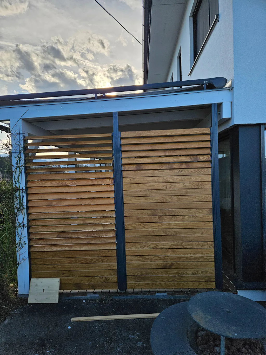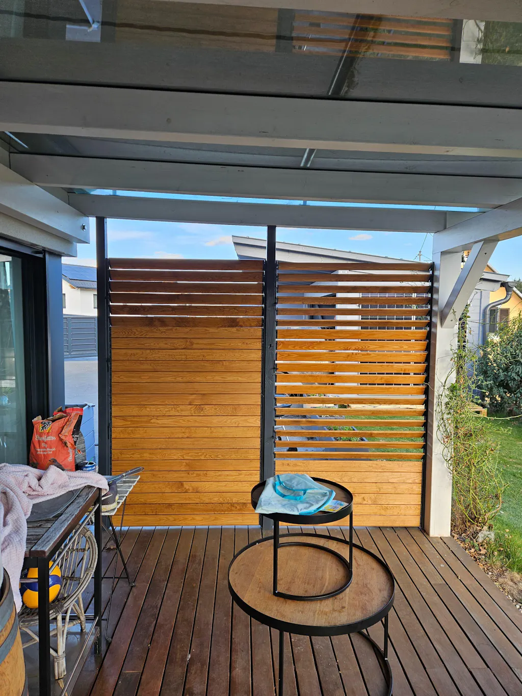 Flex-Wood ist ein Gartenrollosystem, das Ihren Garten umgestaltet und ihm ein modernes Aussehen verleiht. Dieses moderne und praktische Produkt erfüllt nicht nur ästhetische Funktionen und bietet Privatsphäre, sondern schützt auch Ihre Terrasse und Sie vor Sonne, Regen und Wind.
